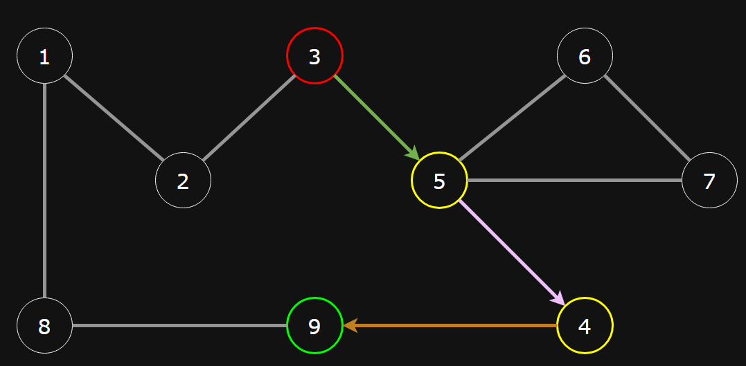 new passengers have started using the network, and have asked you how to get from their original station to the destination station. Help them determine the route with the shortest amount of transfers. If there are multiple routes with the same minimum amount of transfers, choose the route with the least amount of stops. It is guaranteed no two routes will have the same minimum amount of transfers and stops.